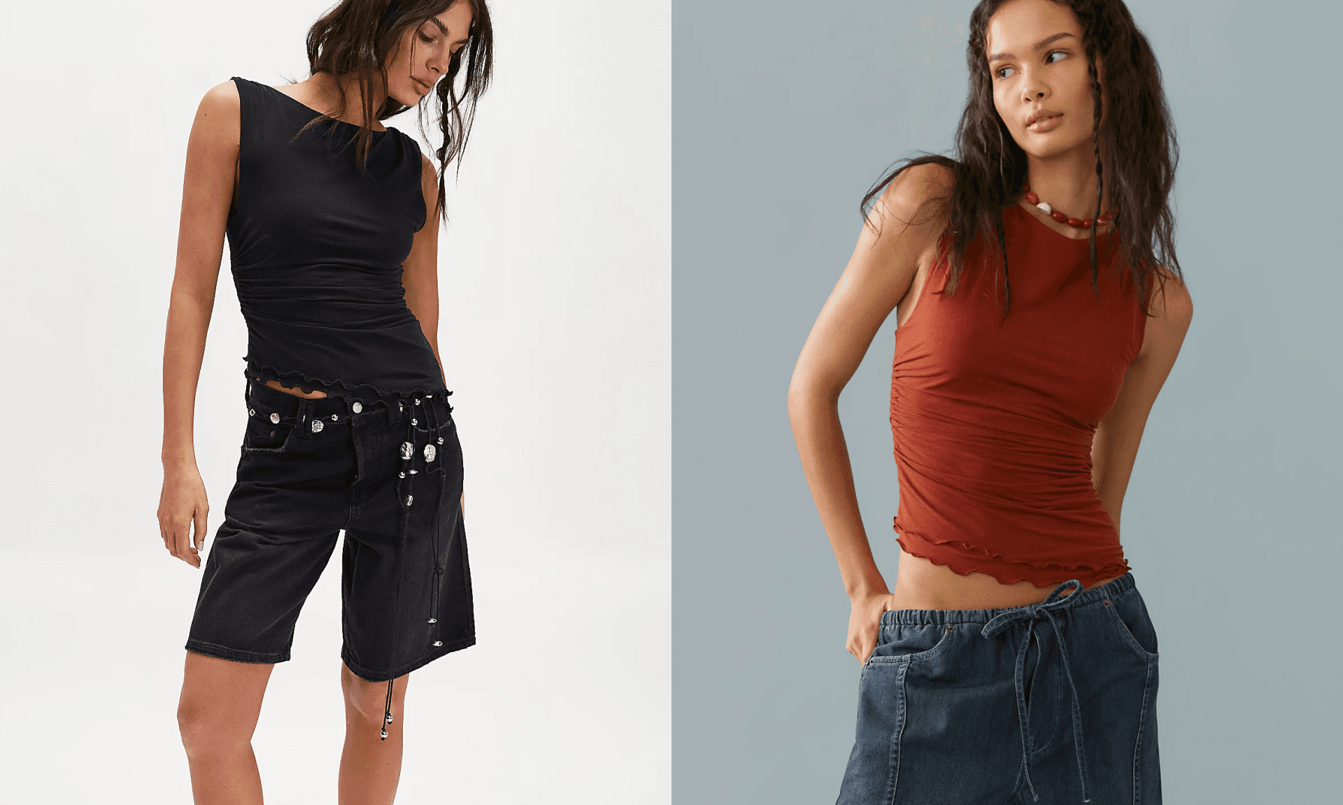 Bermuda-style shorts are officially back. These have an elastic waistband that makes them feel like slipping on your go-to sweats, while their loose fit and bold colors make them a great option for any casual outing on your cal. Throw them on with a classic button-down or a stretchy ribbed tee for a look that’s both chic and comfortable. ($58)