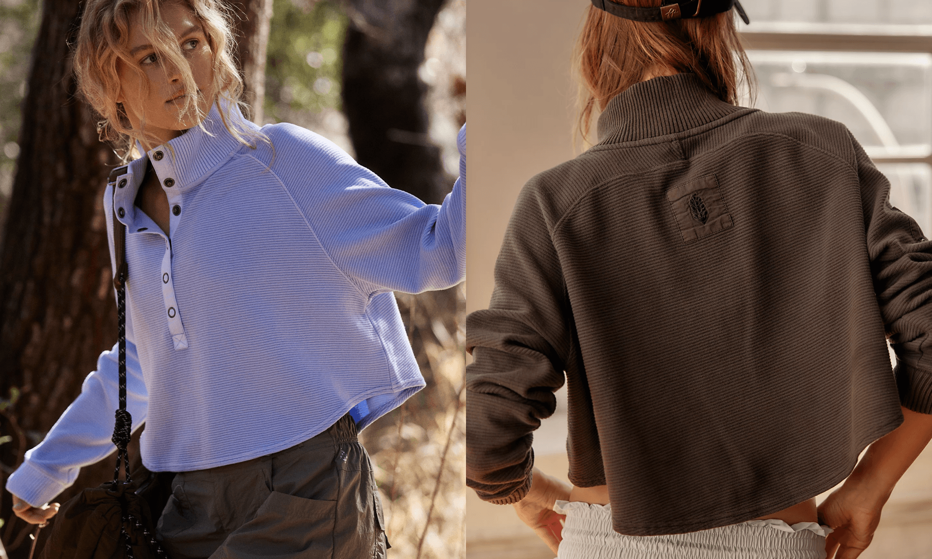 This long-sleeve has us dreaming of cozy mornings on the couch. It’s cropped so it pairs well with leggings or high-waisted pants, but its boxy shape keeps it roomy and comfortable. Throw it on over PJs or loungewear to start your day, or add boyfriend jeans for a chic, relaxed look. ($78)