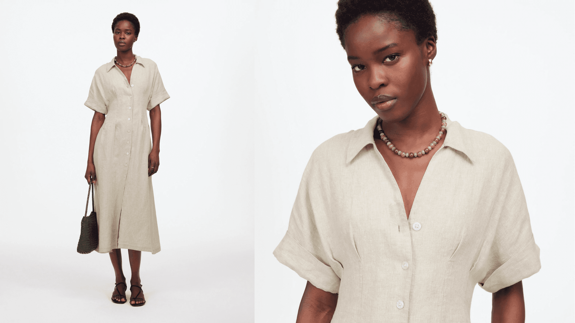 This dress has a drop waist and wide cuffed sleeves. It’s made of 100% linen, so it’ll keep you cool during upcoming vacations and warm office commutes. Wear it with a bright statement necklace and you’ll have a cute summer uniform in seconds. ($148, Madewell)