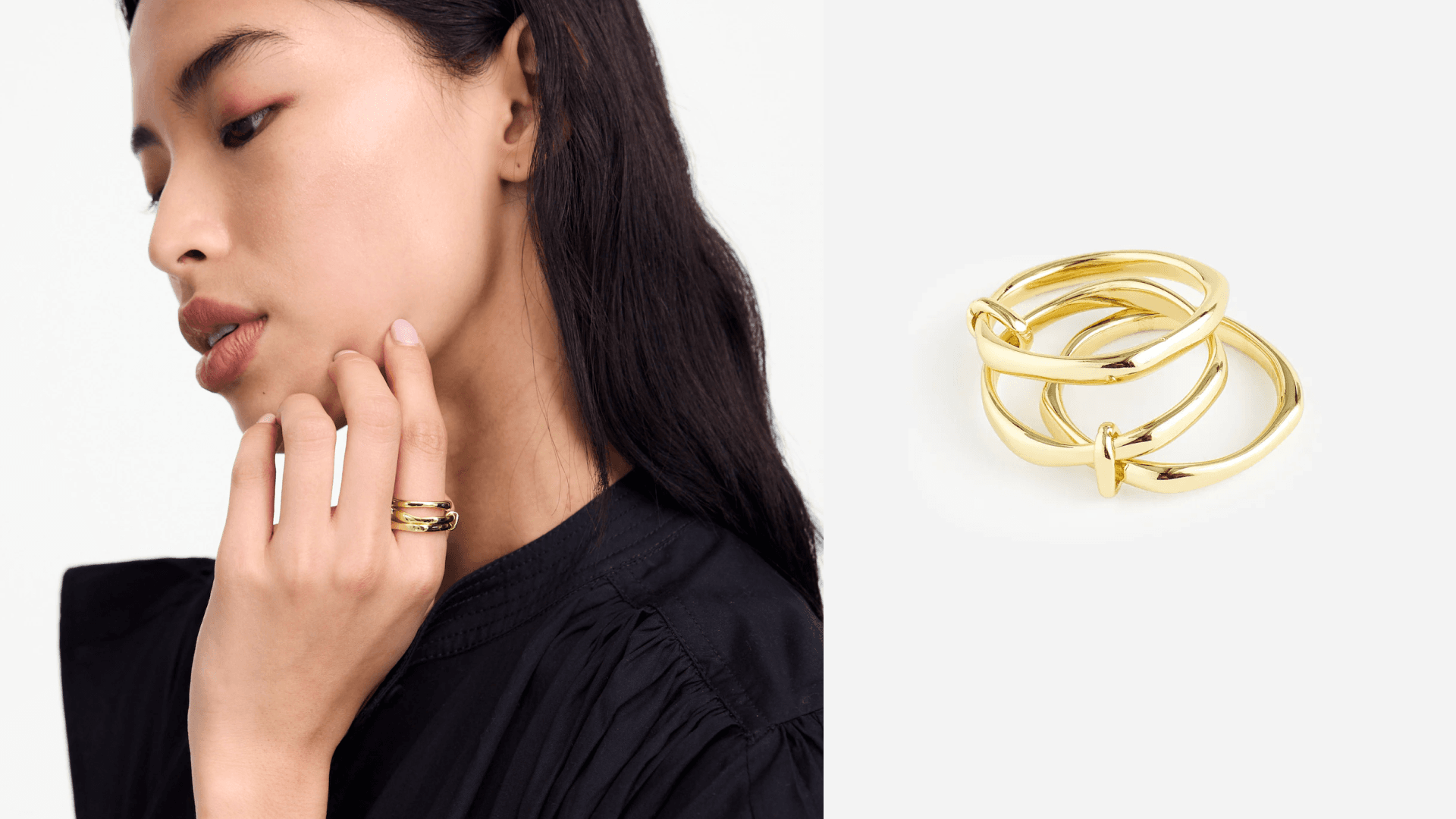 Madewell’s done it again. This time, with a linked ring that’s meant to be a riff on the nearly $3,000 ring from Spinelli Kilcollin. My favorite detail: Since the links are moveable, you can treat this ring like a subtle fidget toy. ($48, Madewell)
