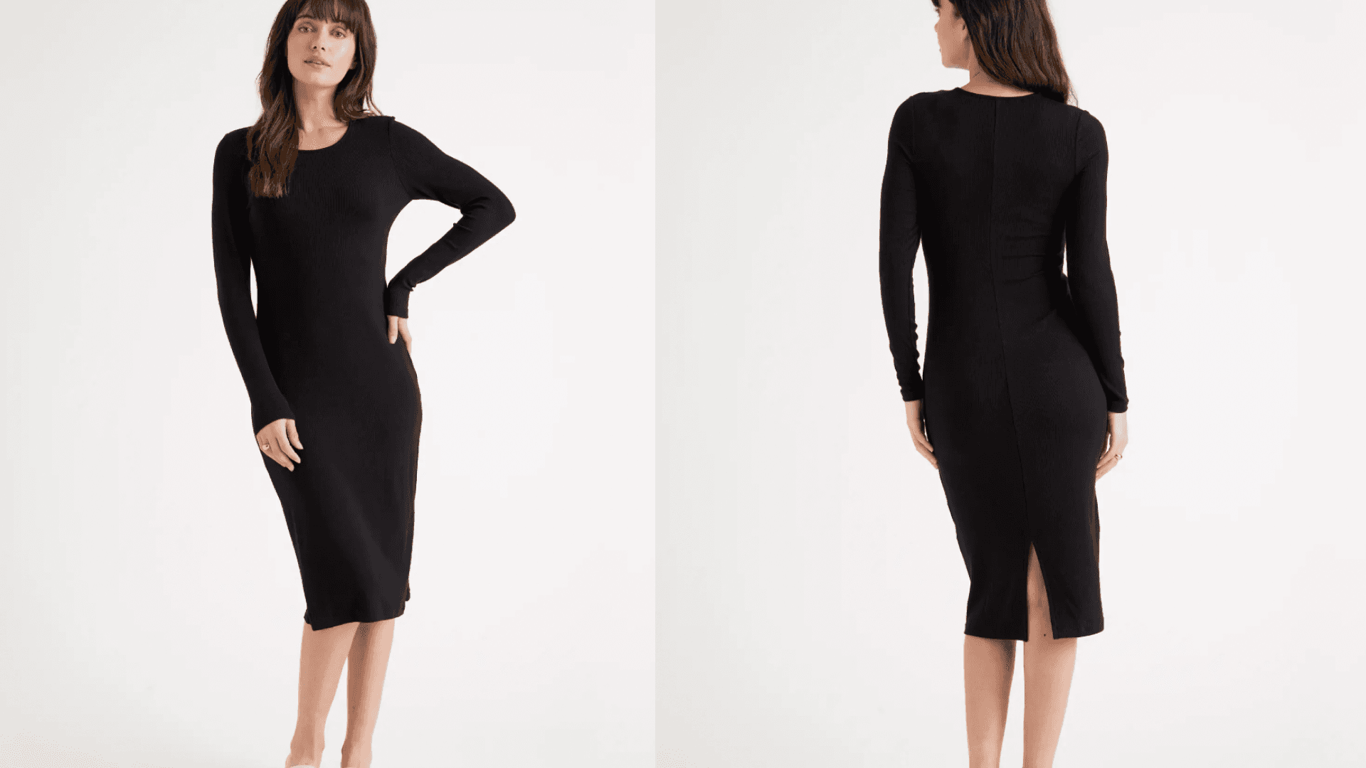 This soft, stretchy midi dress is made of Tencel — an eco-friendly fabric that's famously breathable — so it'll keep you warm in winter (wear it with tights and boots), but comfortable in the warmer months, too. We like the ribbed texture and back slit that makes it easier to walk. ($49.90, Quince)