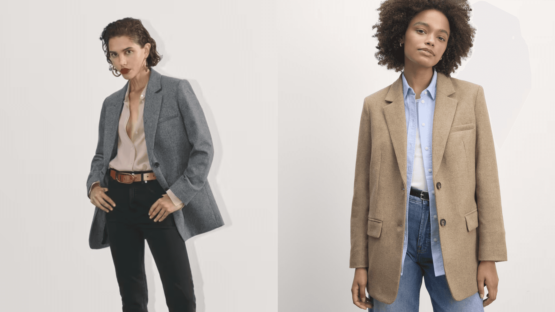 This one’s made with super-soft recycled Italian wool and has a classic notch collar, architectural shoulders, and an ‘80s-inspired oversized silhouette. It comes in five classic colors, like gray herringbone and houndstooth. If you’re not looking for a strong silhouette, just cut the shoulder pads out for a more relaxed look. ($248, Everlane)