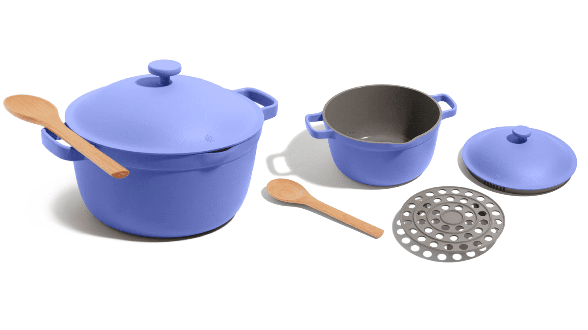 Dutch oven who? You’ve probably heard all the hype about the Always Pan, but this super-useful pot from cult-fave brand Our Place deserves a spot in their kitchen too. It’s got everything from a roasting rack/steamer to a pour spout and a spot to rest the included beechwood spoon. And with 10 color options, it’s so cute that they’ll want to leave it out on the stove even when they’re not using it. ($165, Our Place)