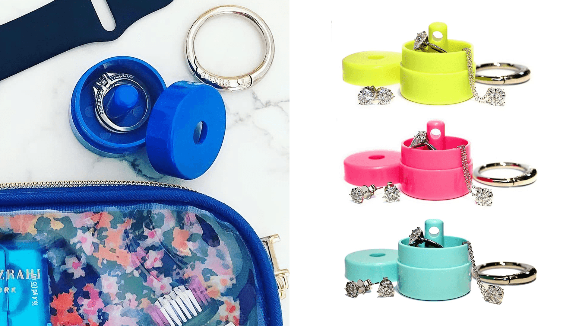 Our latest obsession: this handy case that stays securely shut. Just add your rings, earrings, and necklaces, then screw on the top. Add the closure ring. You’ll notice that when you try to open it back up, it won’t budge. PS: We suggest keeping this inside your bag as a secure jewelry holder, as opposed to a key chain. ({{dynamicPrice}}, Amazon)