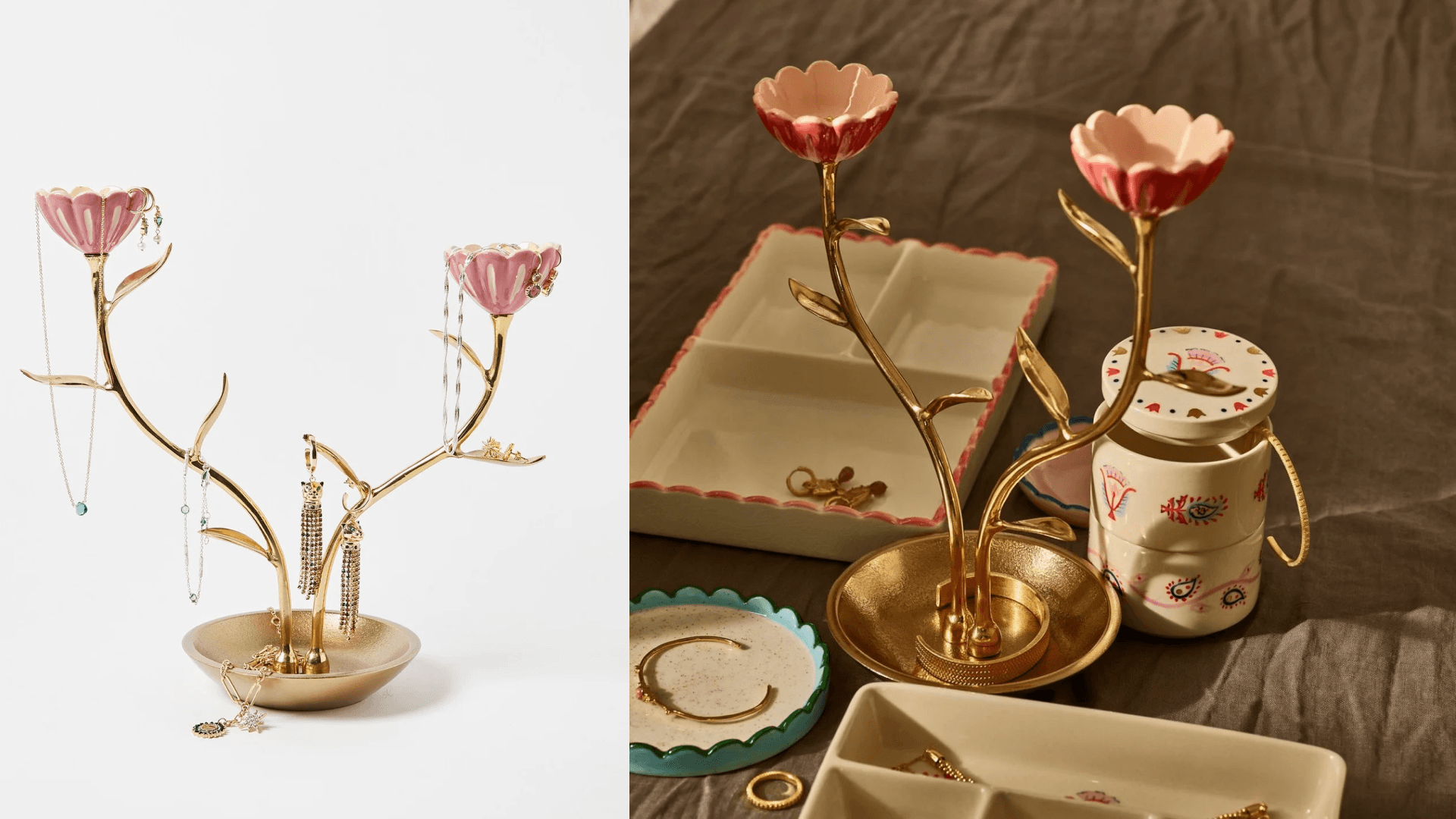Keeping your space tidy and design-forward? A win in our books. This piece is covered in pink flowers along with gold leaf-shaped hooks that seamlessly blend in. You can use it for necklaces, bracelets, or even a place to store your keys. ($51, Oliver Bonas)