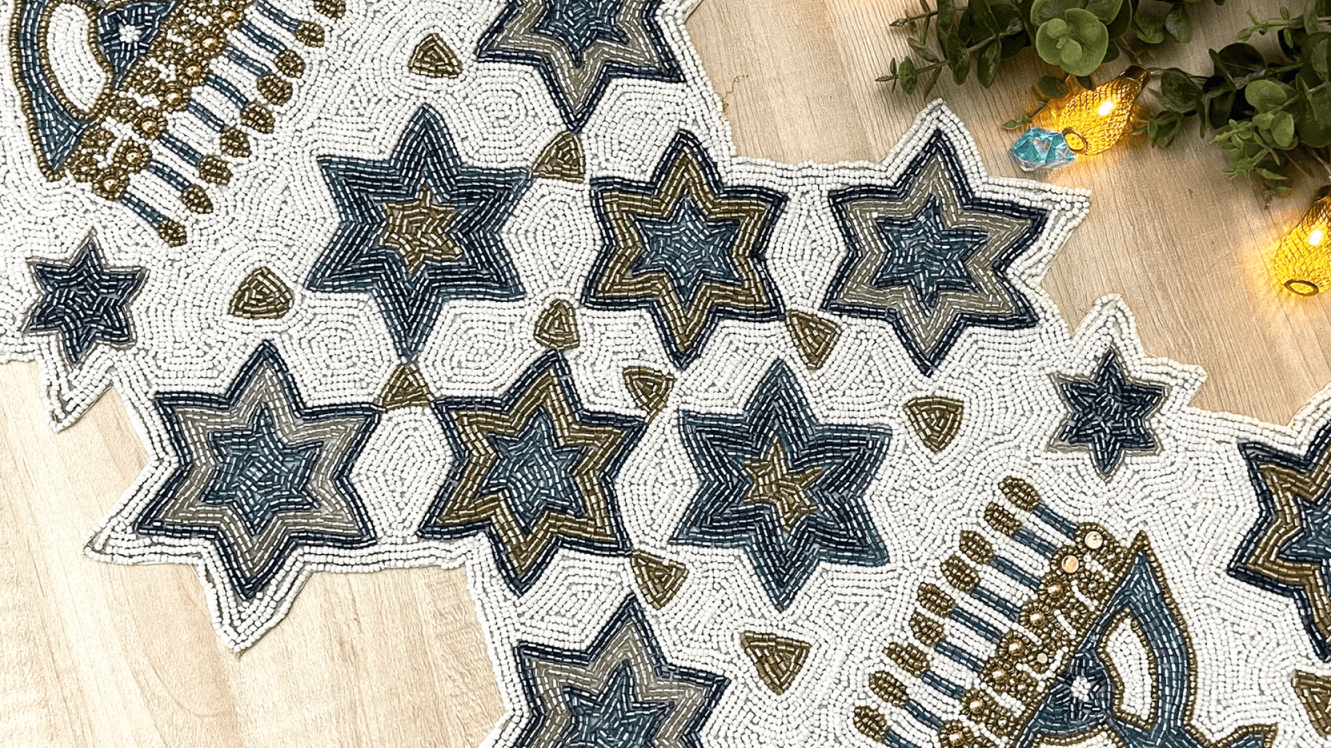 The easiest way to decorate your space is to add a table runner. This beaded one from Etsy is covered in blue and gold sparkling beads. It’ll add a statement to your tablescape without feeling overdone. Beautiful Hanukkah decorations for the win. ($74.40, Enlivenstores via Etsy)