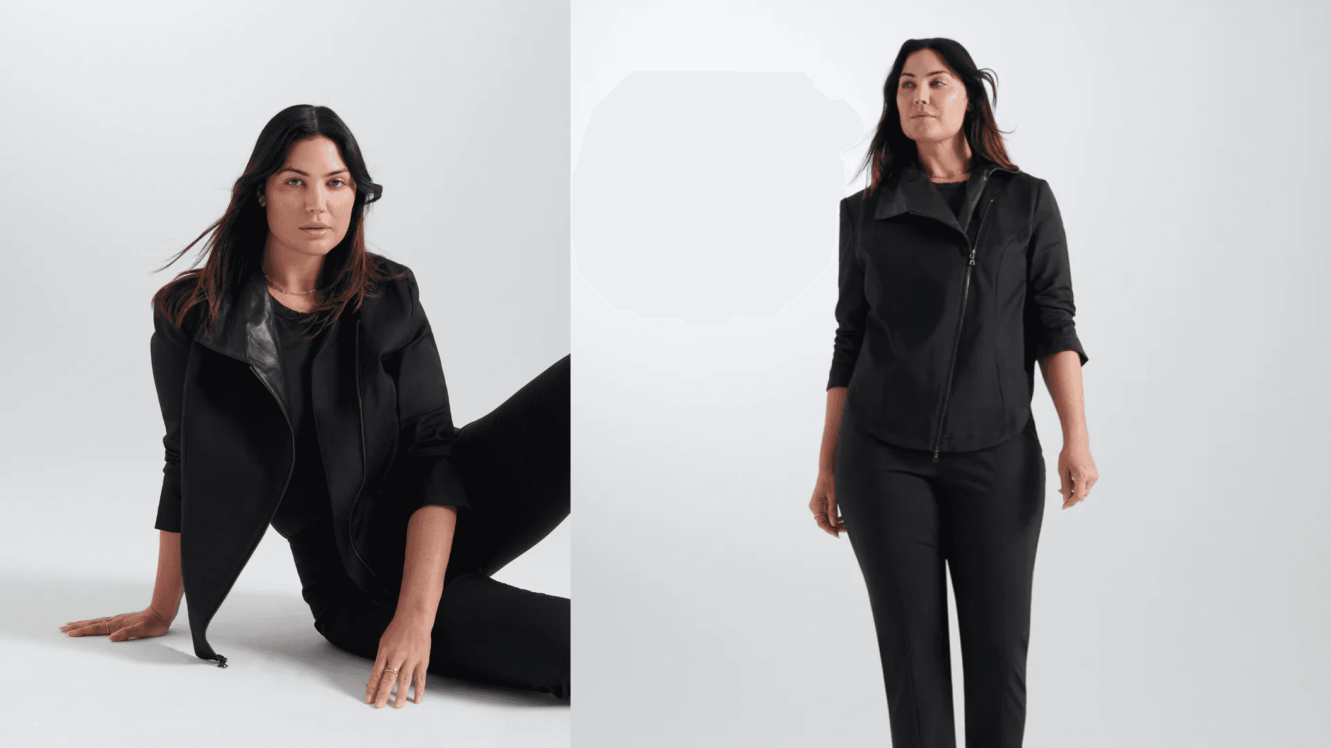I’d suggest starting with our trousers. We are known for our fit, and offer all of our trousers in three shapes and seven sizes. For fall, I’m really into our Katy top and our faux-patent Lynne coat. The Katy top has a ‘60s vibe with a wide mock turtleneck, and the Lynne coat is our take on a peacoat.