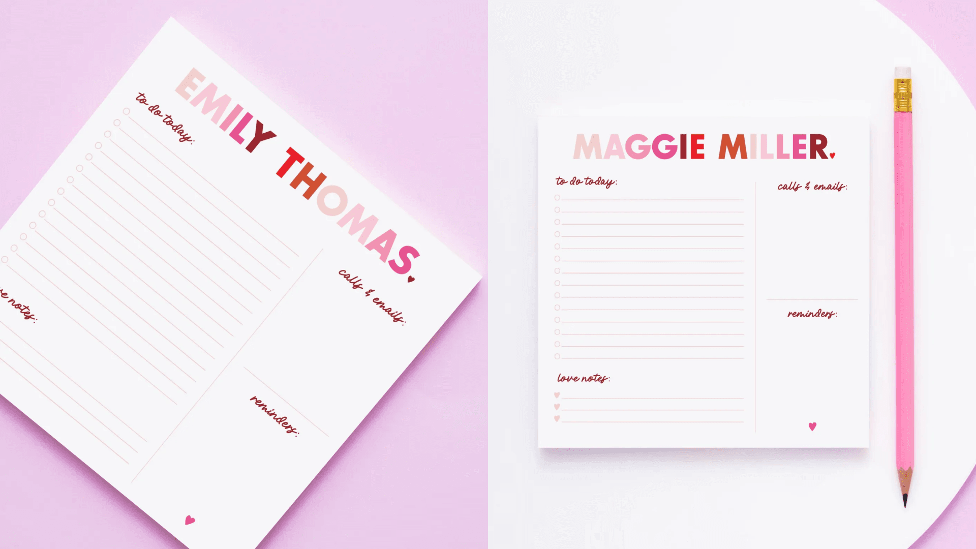 There’s nothing a sweet notepad can’t help you accomplish. This one from JoyCreativeShop has sections for to-dos, notes, and priorities. Add their name (or yours) for free. We love the sweet heart detailing, too. ($32+, JoyCreativeShop via Etsy)