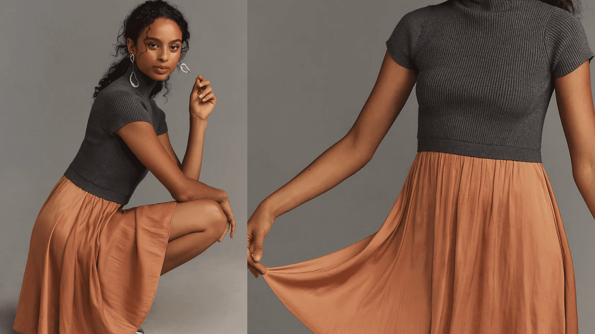 Thanks to the color-blocking, this dress looks like you assembled a top and a skirt. When really, it’s just one piece to put on. Our editor has this dress and she loves to layer a blazer or cardigan on top, tights underneath for coverage and warmth on cooler days, and a stack of necklaces to complete the outfit. This dress comes in petite, regular, and plus sizing. ($148, Anthropologie)