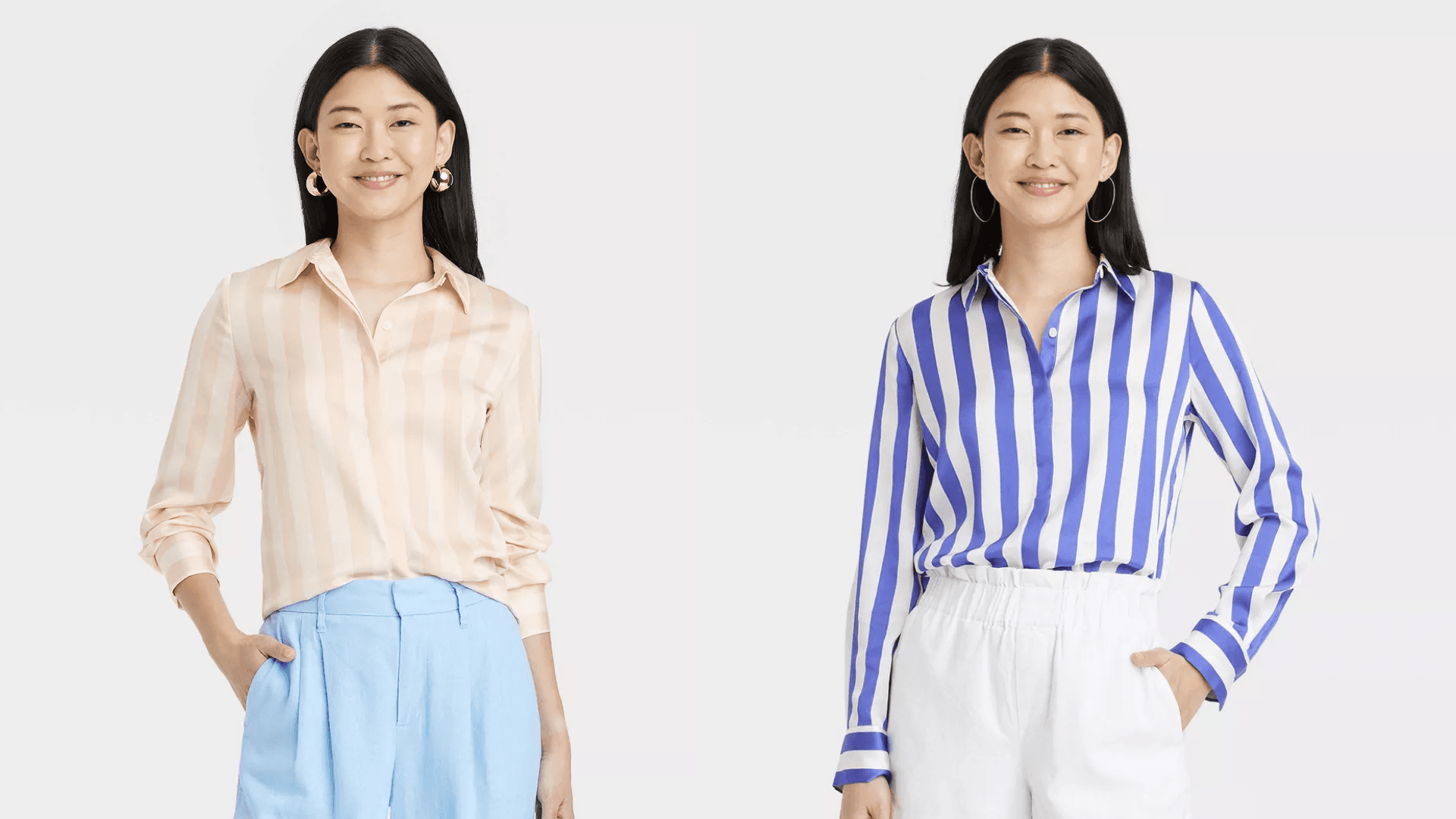 Here’s yet another obsession from Target. This satin top comes in four colorways, including two chic striped versions. It comes in sizes up to 4X and there’s something about it that feels fun, yet professional. If you prefer to wear color and want that to shine through in your next interview, add this top to your cart immediately. ($13.75+, Target)