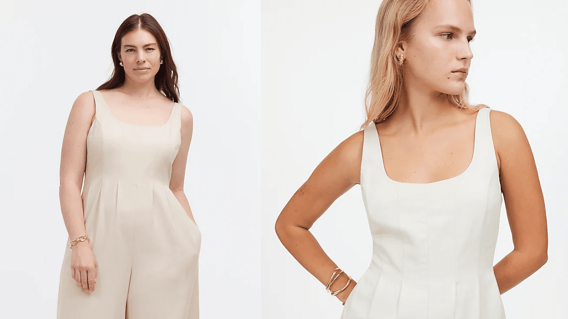 Yes, you can wear a jumpsuit to a job interview. This one is made of a cotton-linen blend and has seaming throughout that makes the bodice more structured. Depending on the time of the year, you can wear a turtleneck underneath or a cardigan on top. ($148, Madewell)